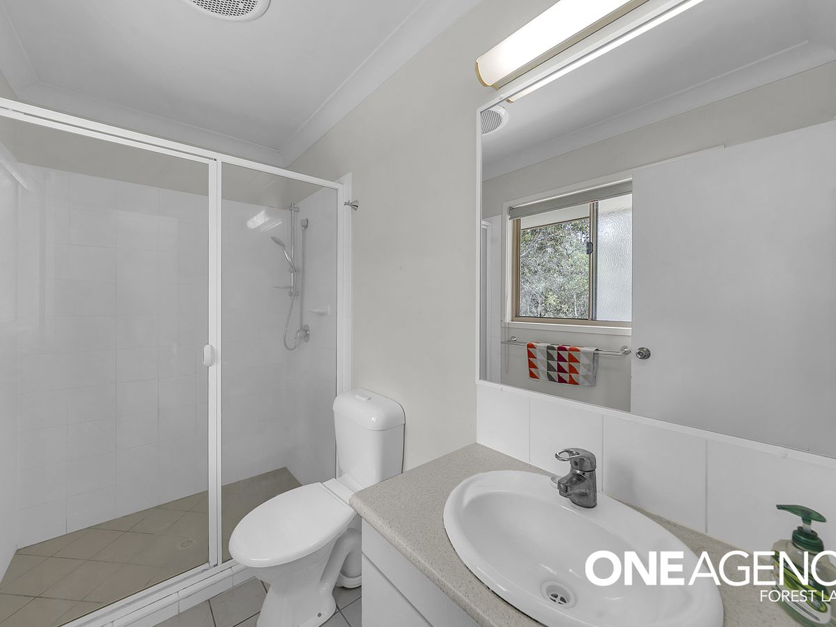 Upstairs, you’ll find three generously sized bedrooms, all fitted with built-in robes. The master bedroom is a standout, featuring its own ensuite and air-conditioning, while the remaining bedrooms are serviced by a well-sized main bathroom complete with separate bath, shower, toilet, and large vanity.