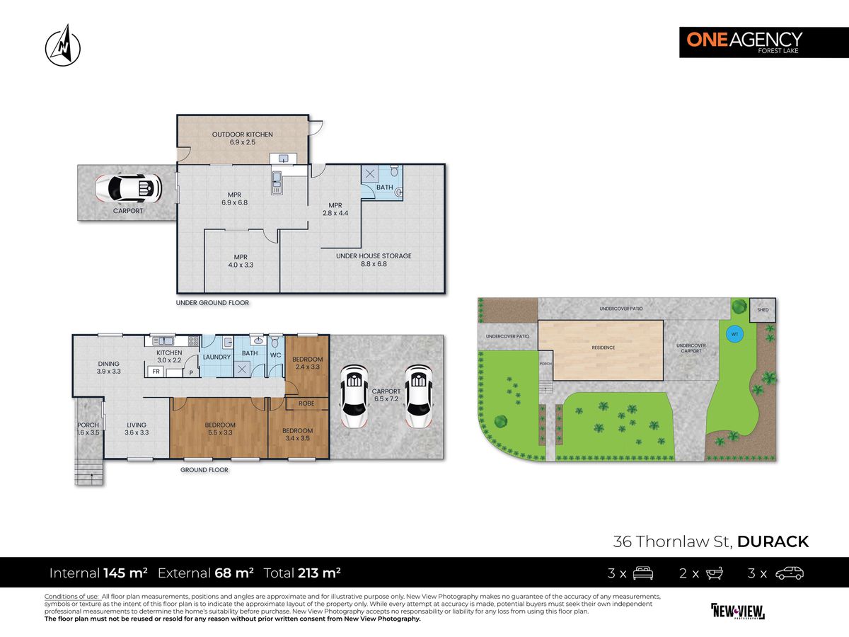 3 bedrooms, 2 bathrooms, 3 car accommodation